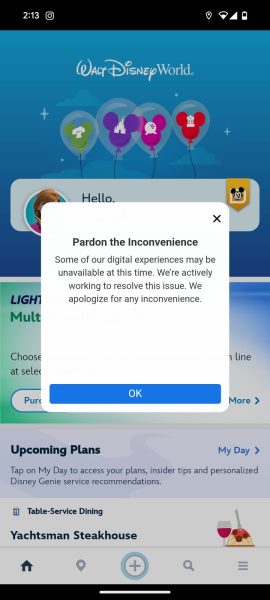 We also got a message pop up on the My Disney Experience app that some digital experience might be down, so it seems there could be some issues with the app today, too.