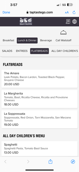 And if you’re staying at the Swan Reserve, you can also order flatbreads from Amare.