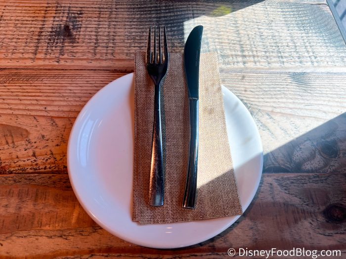 On the tables, you’ll find a paper napkin with utensils, and, if you’re like us, the excitement for the meal is real at this point.