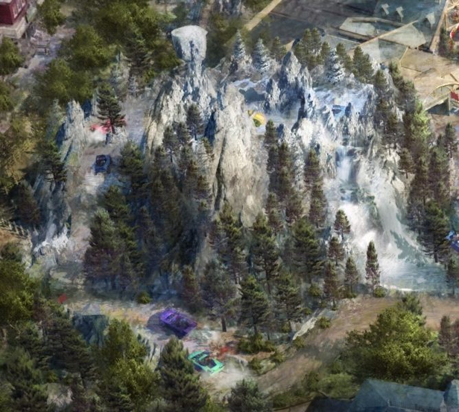 We did get the news that this new land will bring with it two NEW Cars attractions! For the first attraction, we’re going to race through the mountains on wild terrain along mountain trails as we dodge geysers and splash through mud holes. The second ride will be geared toward “smaller racers” and will be fun for the whole family! Now, let’s have a closer look at some of the concept art for the new land and see what we can learn about the new rides!