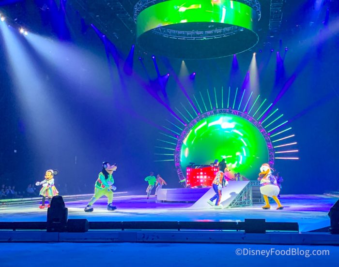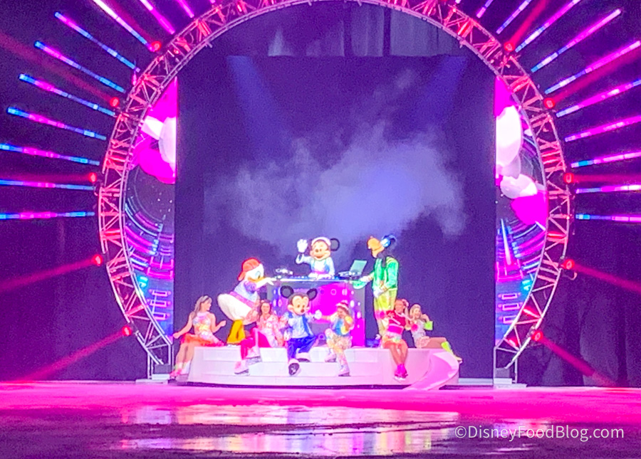 DJ Freeze gets the party going with some fun remixes of your favorite Disney songs to bring the energy up before the show, and then the show officially begins! There are around 40 performers in the production and 42 different Disney characters are featured in the show as well.