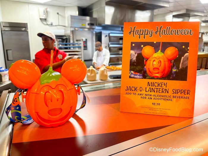 We found this baby at Sunshine Seasons in EPCOT for $12.79, which also includes a non-alcoholic beverage of your choice. The sipper is also available at Connections Cafe and Eatery, but when we checked, it was sold out there.