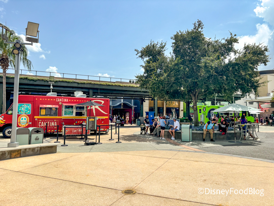 The 4 Rivers Cantina Barbacoa Food Truck is located on the West Side of Disney Springs. It is in an area with a selection of food trucks across from Disney’s Candy Cauldron. When we were there you could find a total of three food trucks: 4 Rivers Cantina Barbacoa, Cilantro Urban Eatery, and GoJuice.