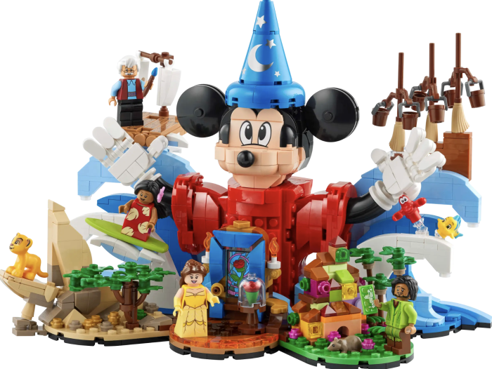 It has 1,103 pieces and features Sorcerer Mickey from Fantasia front and center, but he’s surrounded by scenes from popular Disney films throughout the decades — The Lion King, Pinocchio, Lilo & Stitch, Beauty and the Beast, The Little Mermaid, and Encanto.