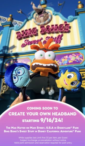 These new mini plush accessories will be available in BOTH Disneyland and Disney World. In Disney World, you can grab these characters at Disney Ever After in Disney Springs. In Disneyland, you can find the emotion at The Mad Hatter in Disneyland Park or Bing Bong’s Sweet Stuff in Disney California Adventure.