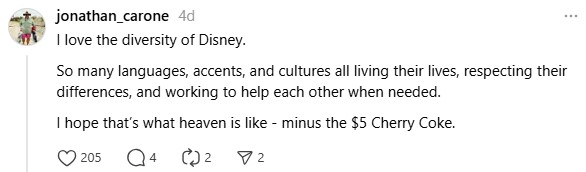 @jonathan_carone posted the following observation of his Disney trip on Threads: