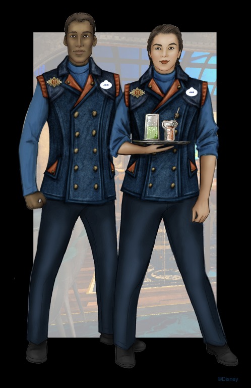 Now, about the costumes for the Periscope Pub, these might look a little familiar because they’re an upscale version of the original 20,000 Leagues Under the Sea ride: note the “N” piece from the ride that was modified into a “P” for the Periscope Pub. We love this throwback.