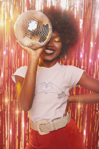 Our new collection features two different designs. The first design is inspired by Taylor Swift’s iconic “heart hands” gesture. The design celebrates friendship and love, and even features arms full of friendship bracelets. The friendship bracelets are sprinkled with some Disney magic too! The bracelets have tiny stars, sparkles, and a hint of pixie dust.