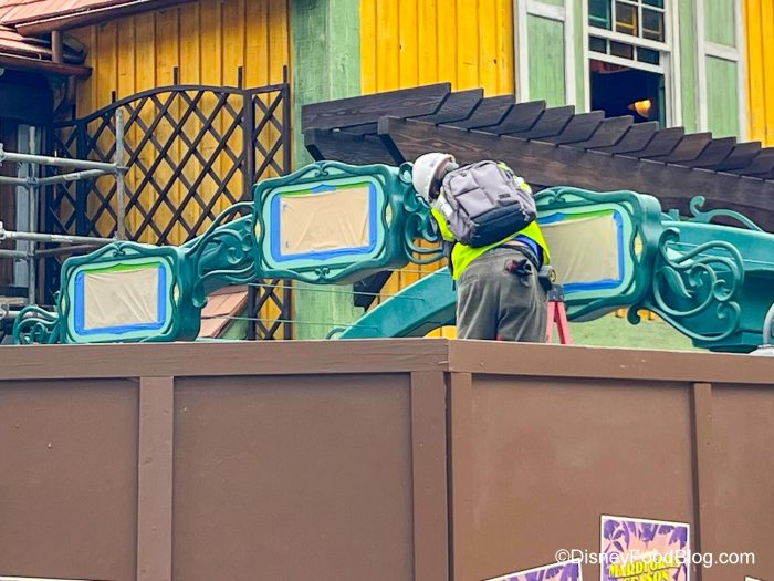 We also spotted ANOTHER new thing being added to the ride, and this one has us even more excited. It’s the wait times sign! Now, Disney hasn’t shared if this version of Tiana’s Bayou Adventure will open with just a standby line and Lightning Lane…or if there will be a virtual queue INSTEAD of a standby line like we sometimes see with new rides in the parks.