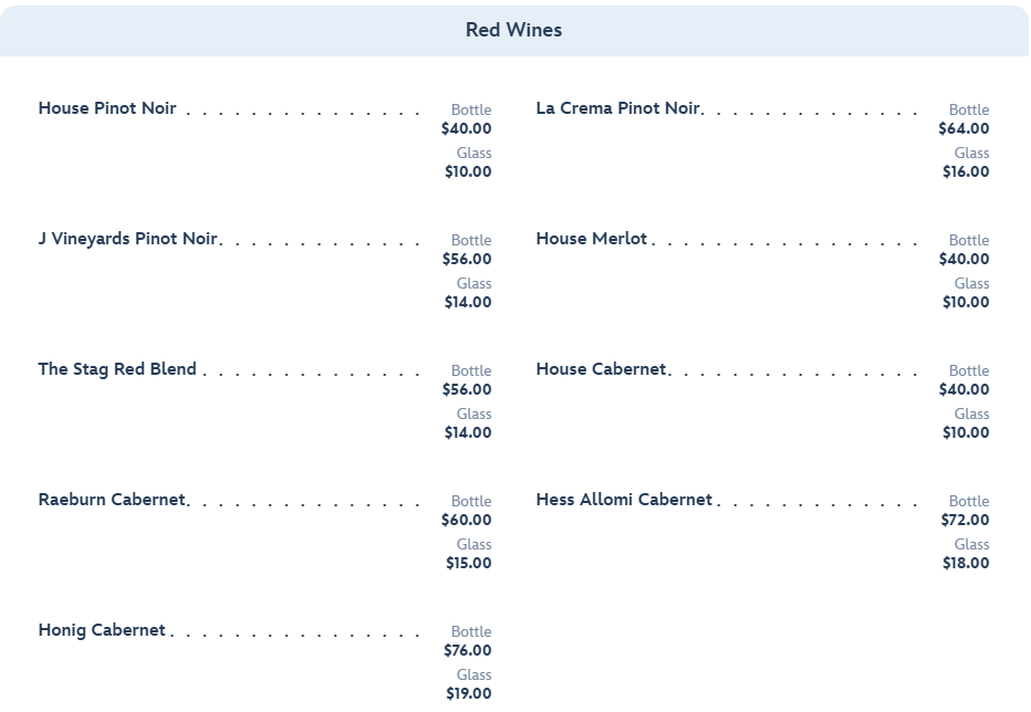 But that is not all; you can also choose from a large list of red wines…