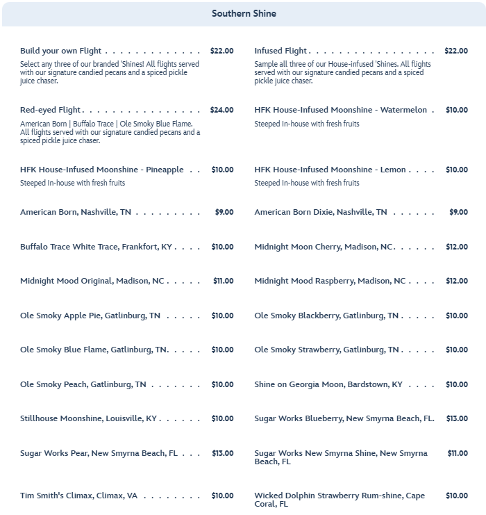 There is also lots of Southern Shine available by the glass.