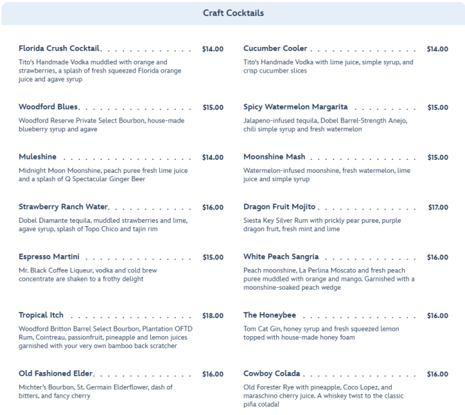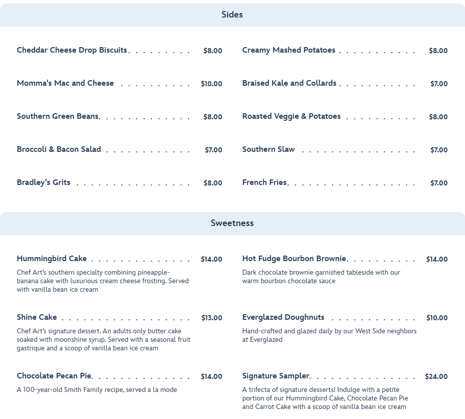There is no shortage of options at Chef Art Smith’s Homecomin’, so let’s get to the food and drinks!