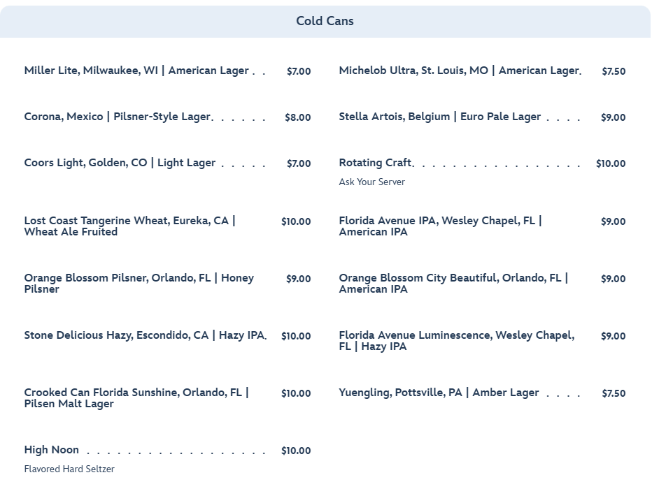 And you can also choose from a variety of cold cans.