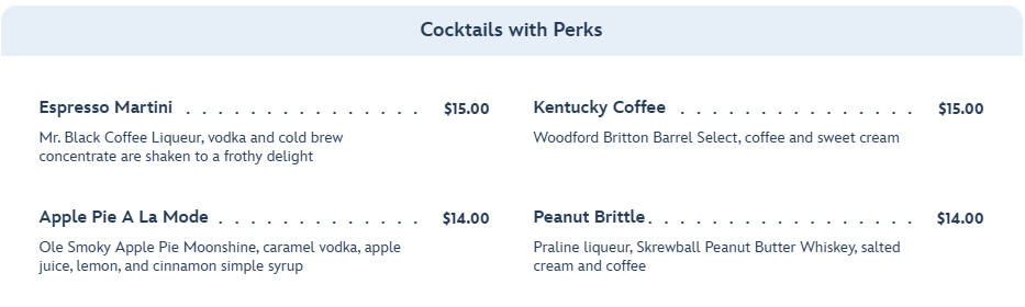 There are also four options in the cocktails with perks section.