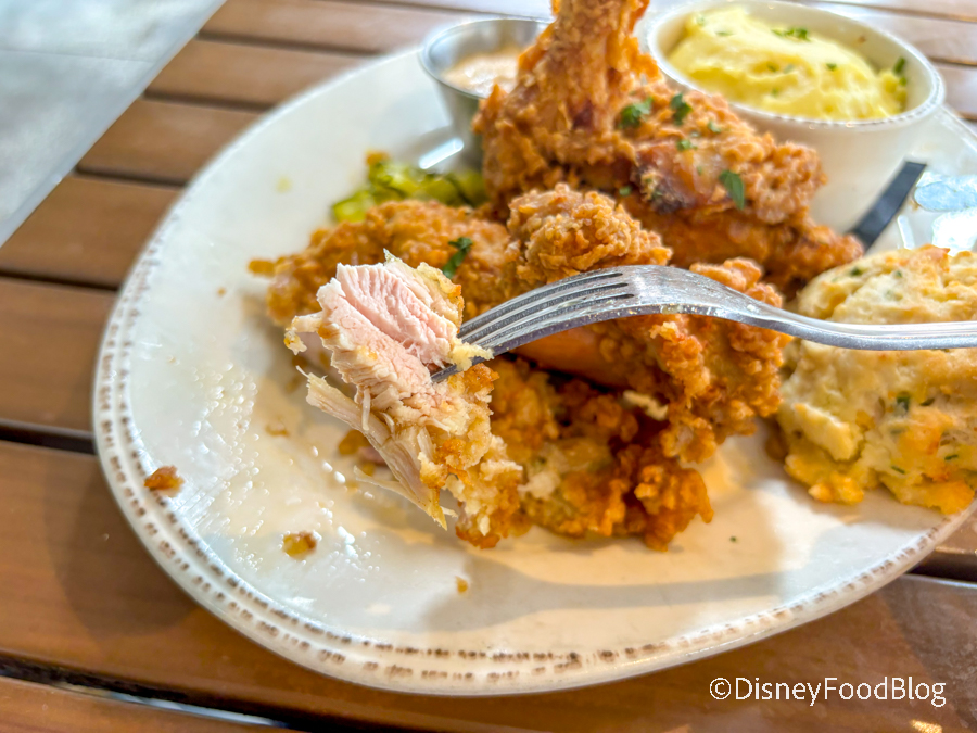 The mashed potatoes and cheddar drop biscuit are the same as what was served on the Meatloaf Main Plate dish. The mashed potatoes are buttery and full of potato flavor, and we could likely survive on the cheddar drop biscuits alone. The sides come together to form a VERY filling meal that will leave you feeling satisfied. If you are looking for some yummy fried chicken, look no further, Chef Art Smith’s Homecomin’ is the restaurant for you!