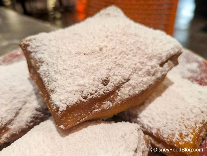 We did end the meal on a high note, though, with Hot Classic Beignets, which are five French Donuts topped generously with Powdered Sugar. You get five for $16. Now, we are a little biased towards the Mickey Beignets from the Mint Julep Bar in Disneyland, but these are actually better (we’re so sorry, Mickey Beignets!). These are warm with plenty of powdered sugar PLUS you get enough to share with the whole table.