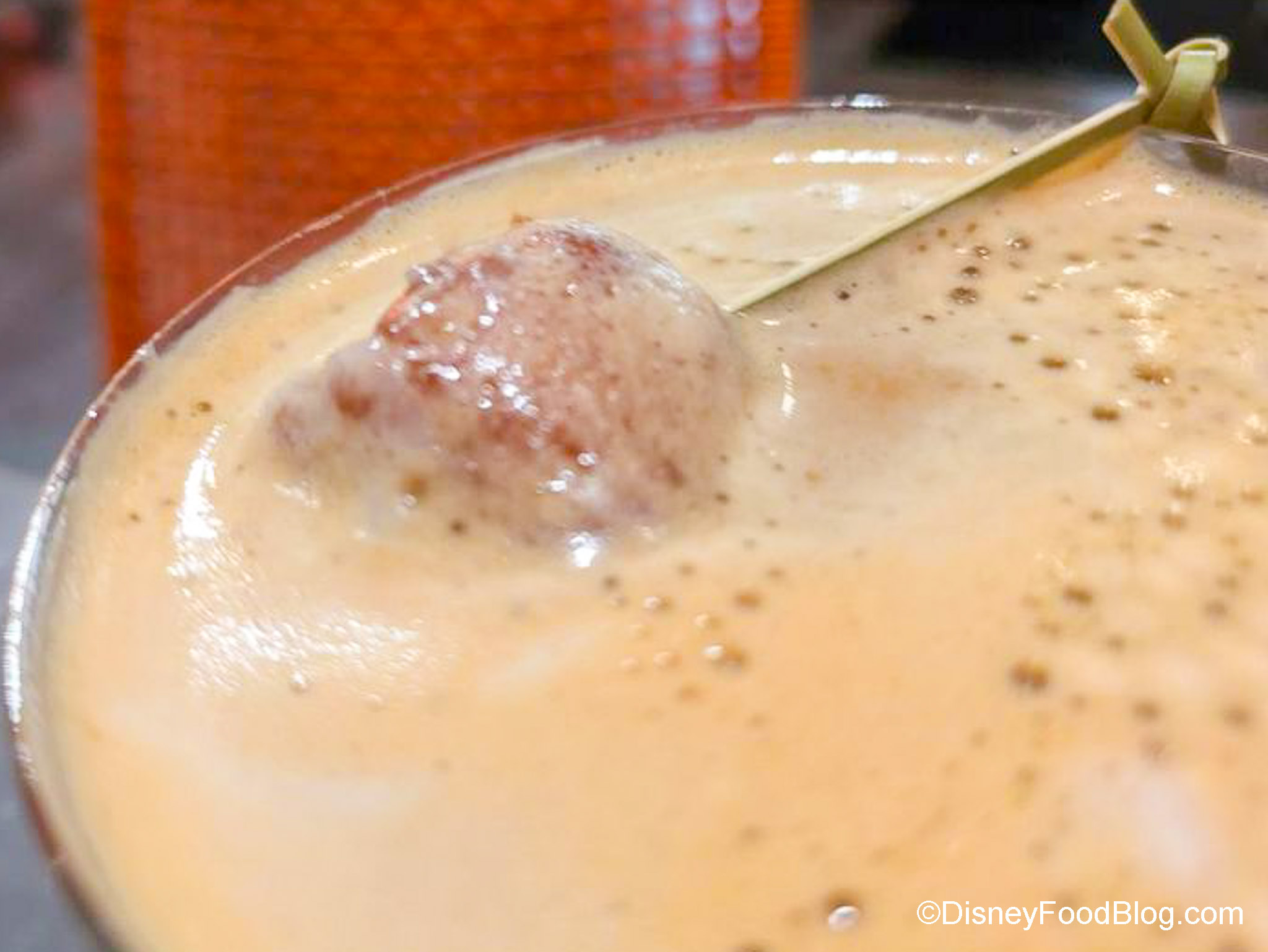 We also couldn’t resist the Praline Cold Brew Martini for $17. It’s made with Tito’s Vodka, Mr. Black Cold Brew, Cold Brew Concentrate, and Half & Half, Praline Syrup with a Mini Glazed Beignet. Yes, this drink has a beignet in it. HOW COULD WE NOT GET THIS?
