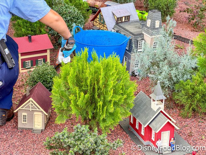 And on top of the interesting love stories happening in our town, we also had another visitor! An EPCOT Cast Member stopped by to trim the trees. And yes, they use a teeny tiny hedge trimmer!