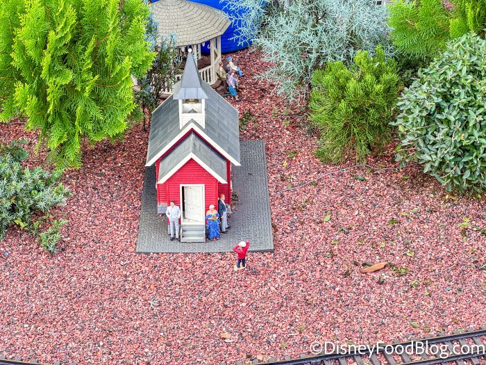 The anarchy within is mostly created by natural occurrences, like giant squirrels, wind, rain, and relatively godzilla-sized lizards who frequent the town; but we find it fun and entertaining to make up fictional stories about what COULD be happening. We are grateful to the folks who create and maintain this Tiny Train Town for Disney World, as it’s one of our favorite parts of EPCOT and always has been.