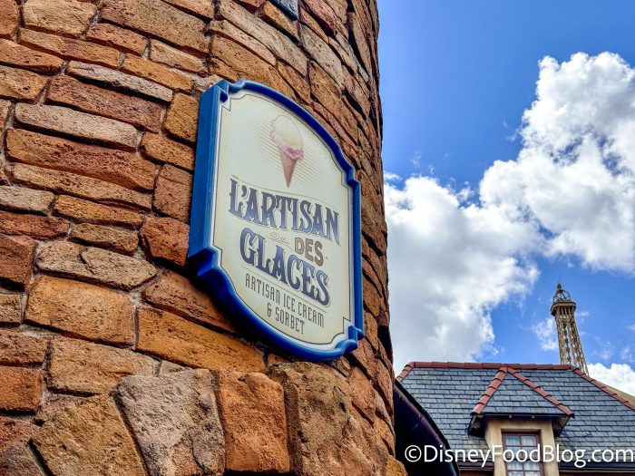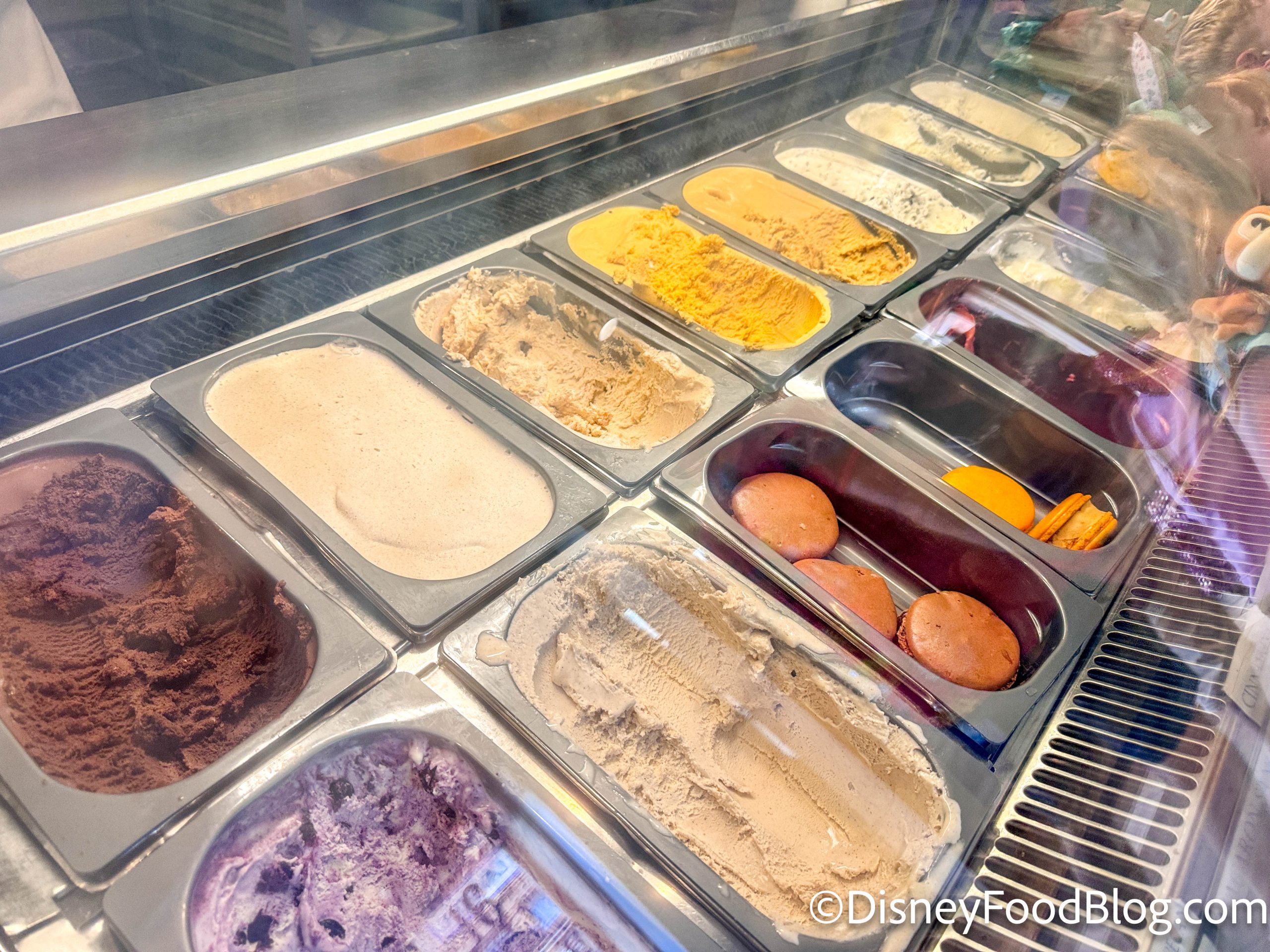 Tucked away back in the France Pavilion at EPCOT is L’Artisan des Glaces, the ice cream shop. This spot is known for hand-scooped ice cream in a variety of yummy flavors, as well as specialty treats like macaron ice cream sandwiches or ice cream scoops pressed into a warm brioche.