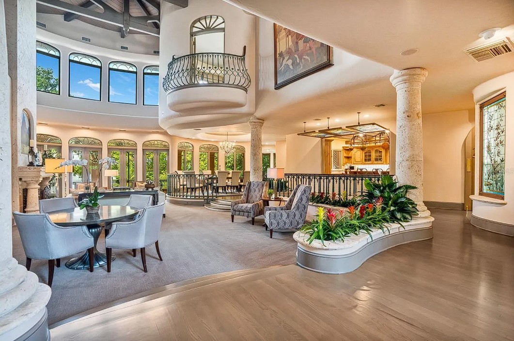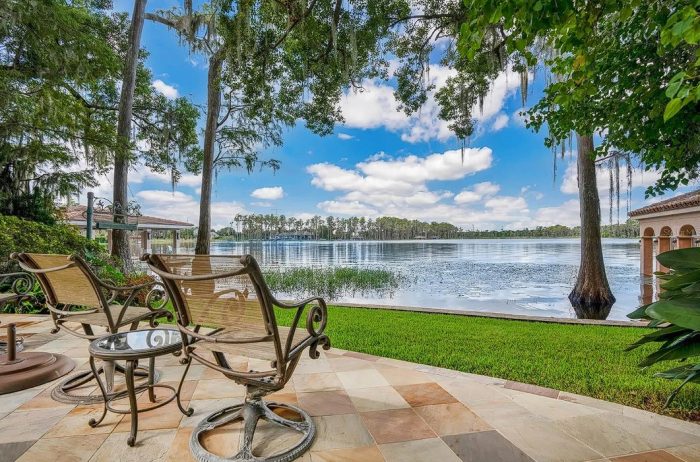 Let’s take a tour of the home! Per Puesta del Sol’s official listing, the house is located on the shores of the Butler Chain of Lakes, equipped with sunset views from many terraces.