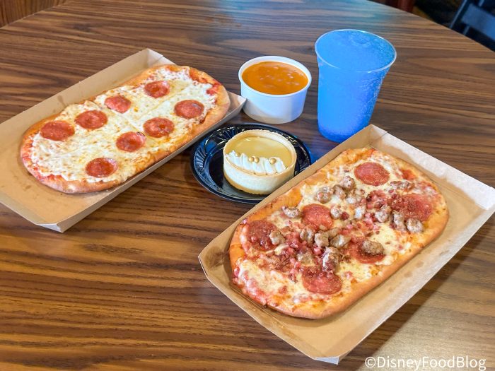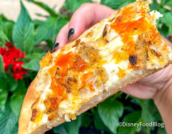 Here, the crusts are soft with a little bit of crispiness on the edges, and Disney is not stingy with the toppings. I’ve also had a few different seasonal or specialty flatbreads, including my personal favorite — the buffalo chicken flavor. And if you want something in addition to pizza, you can always check out the add-ons like breadsticks, french fries, or tomato soup to fill you up.