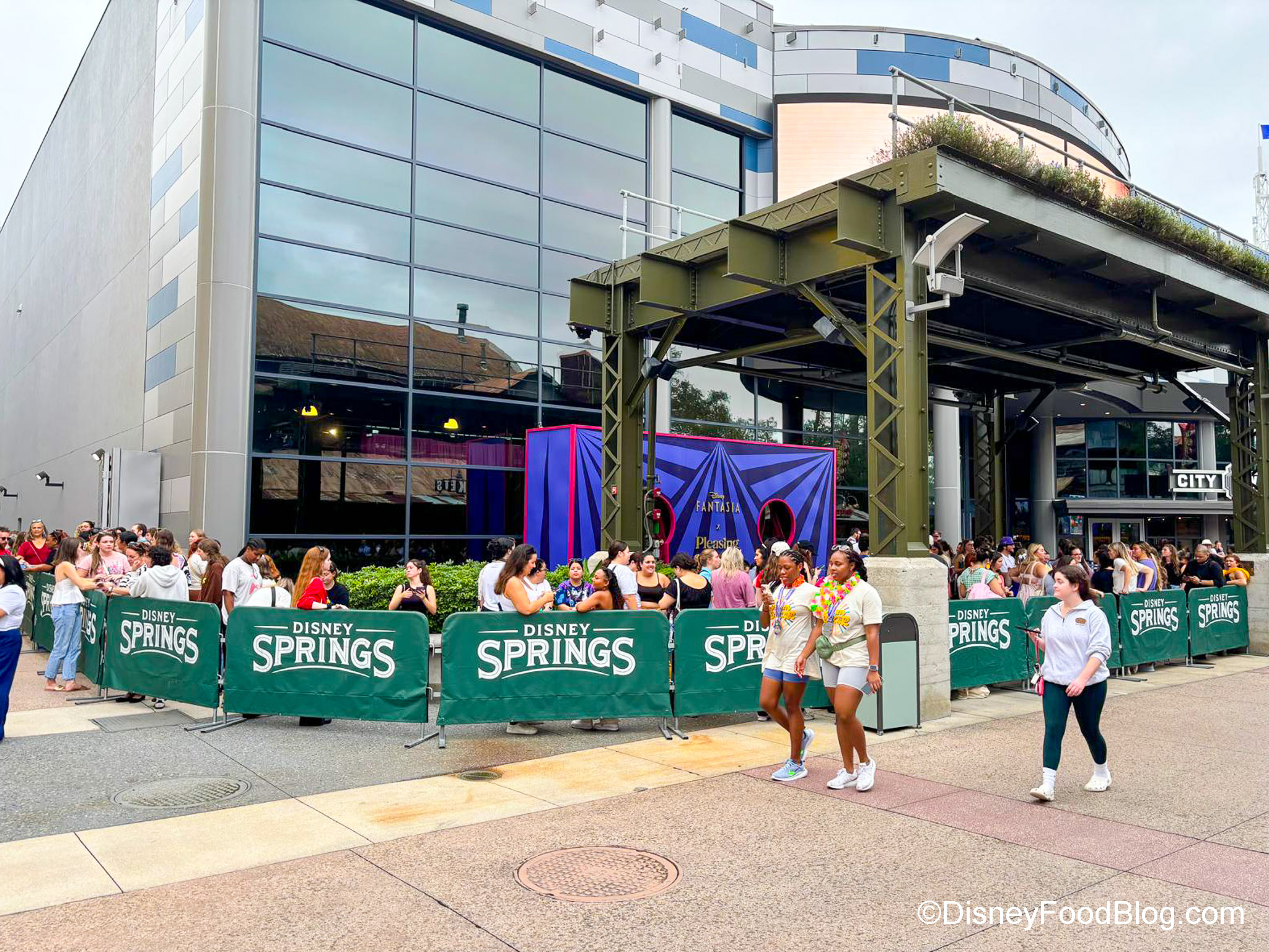 Well, we decided to visit the Disney Springs pop-up Pleasing x Fantasia shop this morning, and when we got there, there were LOADS of people waiting to get inside.