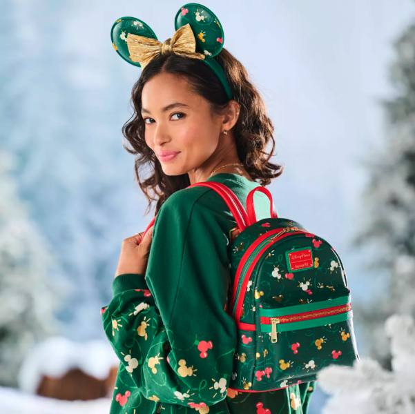 It’s almost time to swap out your current daily Loungefly for a new Christmas Loungefly! The new mini backpack features Mickey Mouse icon holiday lights dancing around the bag. You can grab it with the matching ears below for an adorable holiday outfit in the parks!