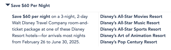 You can get these savings for packages from February 26th through June 30th, 2025, for rooms and tickets. This could be a great way to save and knock out two tasks on your to-do list!
