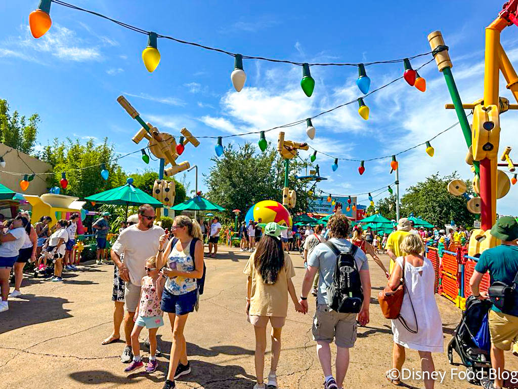 As we were saying, if you’ve been to Toy Story Land at Disney’s Hollywood Studios, you’ve probably noticed something that’s less than ideal. Sure, it’s colorful, whimsical, and packed with fan-favorite characters, but it’s also seriously lacking in some key areas (i.e. shade, seating, and space to breathe in general.)