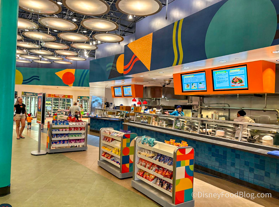 BREAKING FOOD COURT NEWS! Part of the refurbishment at Everything Pop! at Disney’s Pop Century Resort is now complete — and we’re kind of obsessed. We love the Mid-Century Modern vibes of the decor, the color, everything! We guess you could say that everything does really pop with this new look.