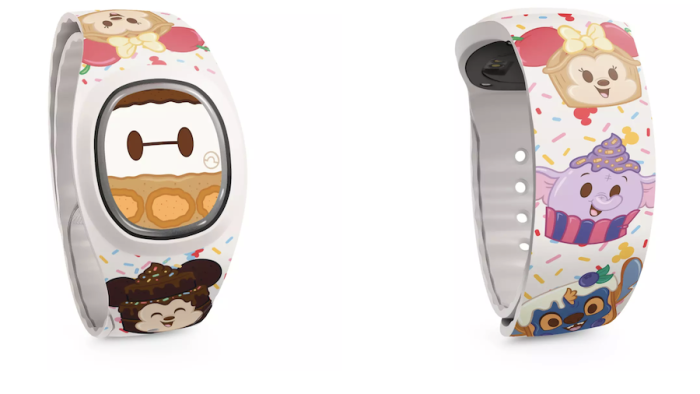 There’s also a Munchling MagicBand+ featuring Mickey Mouse Mocha Chocolate Cake, Minnie Mouse Cherry Tart, Marie Strawberry Pound Cake, Stitch Frosted Blueberry Loaf, and Lumpy the Heffalump Ube Cupcake from the Baked Treats Remix series, and Winnie the Pooh Honey Cannoli, and a tappable icon featuring Baymax Tiramisu. The band offers all of the same benefits and uses as other MagicBand+ offerings including usage for theme park and room admission, Lightning Lane, and PhotoPass, as well as gesture recognition and interaction with certain attractions and shows.