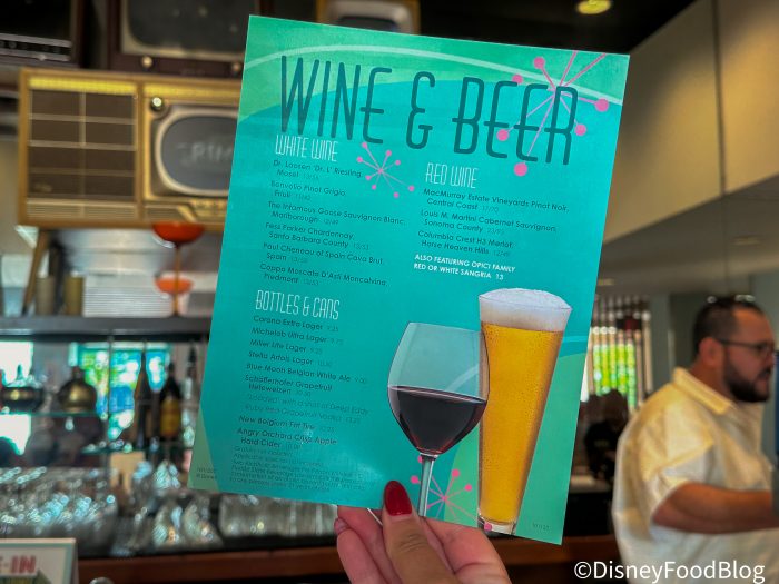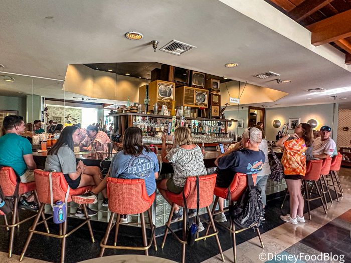 - You’re looking for a lounge with some food. Unfortunately, when we asked this time around, we were NOT able to order any food at the lounge. This is one Disney World lounge that’s exclusively drinks.