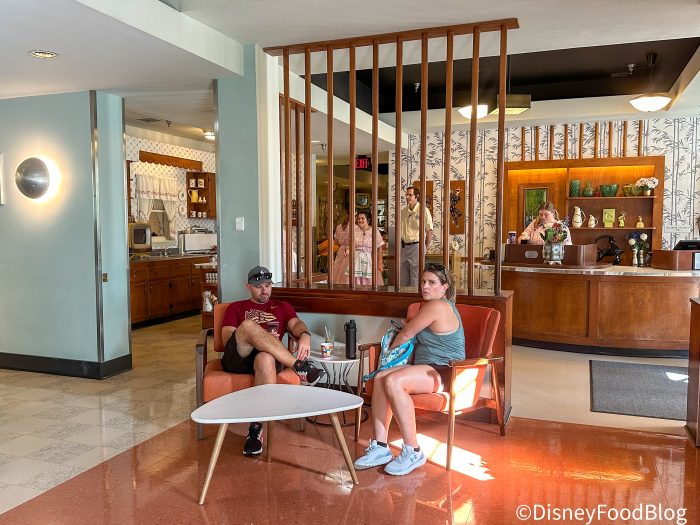 Adjacent from it, you’ll find a few more padded seats to claim as they empty, and just behind it, you’ll hear the Cast Members working the 50’s Prime Time Cafe restaurant welcoming in their own set of diners.