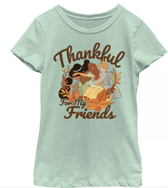Or you can prepare for Thanksgiving and grab the Disney Princesses Thankful for my Friends T-Shirt! This one features Cinderella, Belle, Tiana, and Jasmine.