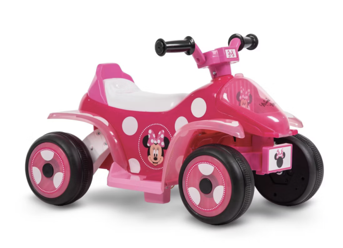 If you’re little one would prefer a today that’s more… interactive, how about the Minnie Mouse quad-ride. This ride on vehicle runs on a 6-volt rechargeable battery, can hold up to 45 lbs., and can accelerate up to 1.5 mph.