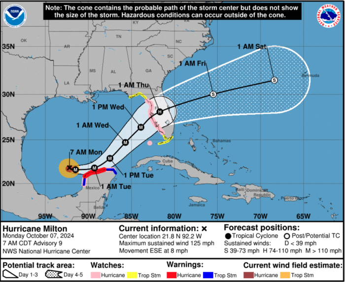 UPDATE: The hurricane warning now lasts through October 8th at 6PM ET.