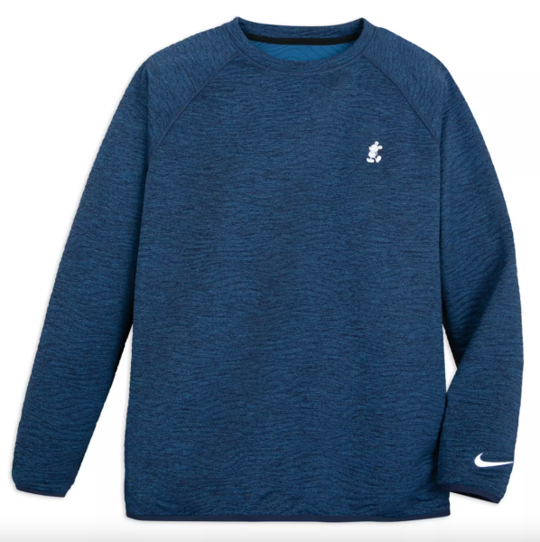 It’s getting chilly, and that means it’s time to invest in a nice, warm pullover. This one has that signature embroidered Mickey icon on the chest, along with a Nike swoosh on the left sleeve. Like most Nike items, this pullover is made with stretch-knit fabric and Nike Dri-FIT technology.
