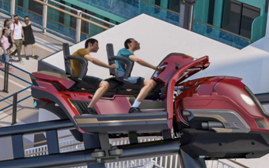 The third attraction, Ironcycle Test Run, will be the first-ever roller coaster aboard a Disney Cruise Line ship and the longest coaster at sea at 820 ft. in length.