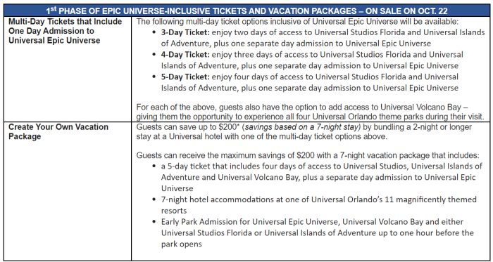 Annual Passholders will get the exclusive right to purchase single-day tickets for Epic Universe beginning on October 24th, 2024. Universal says single-day tickets for the general public, additional multi-day ticket options, Florida resident tickets, Universal Express passes and more – will be available at a later date before the park opens.