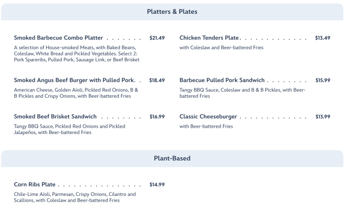 This new spot officially opens up on October 25th and we can’t wait to try it out. We previously got a sneak peek of the menu items (and we’re not gonna lie, they look GOOD), but now we know how much these new items will cost. Check out the full list of entrees below! These range from $13.49 for the Chicken Tenders Plate to $21.49 for the Smoked Barbecue Combo Platter.