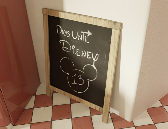 Now on Amazon, you can shop via a 3D virtual shopping feature! This one is called Once Upon a Cottage and is full of Disney items from Amazon, of course. You can move from room to room and click on any items that interest you (each item has a circle you can click on to get more information). Not only can you shop, but check out all of the details including this “Days Until Disney” countdown board!