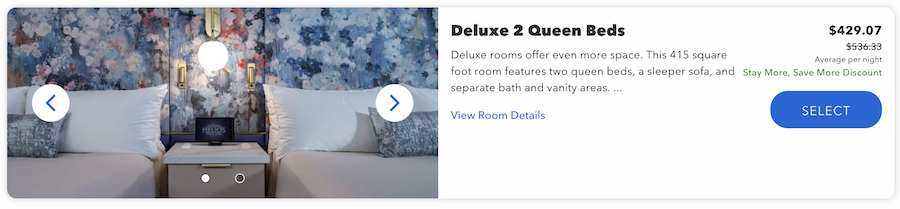 Prices for the hotel’s standard rooms are approximately where we expected, with date-based fluctuations.