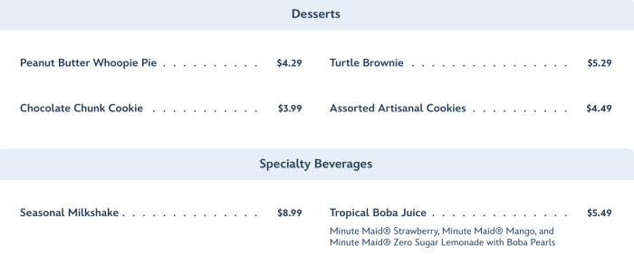 You’re probably not going to order a culinary masterpiece here, but it’s not bad by Disney quick service standards. It’s not topping our “best restaurants” list anytime soon, but it’s also not offending us. This is just a classic, reliable choice!