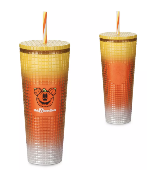 This cold-drink tumbler features an orange/white/yellow color scheme mimicking the delicious (yeah, we said it) seasonal treat!