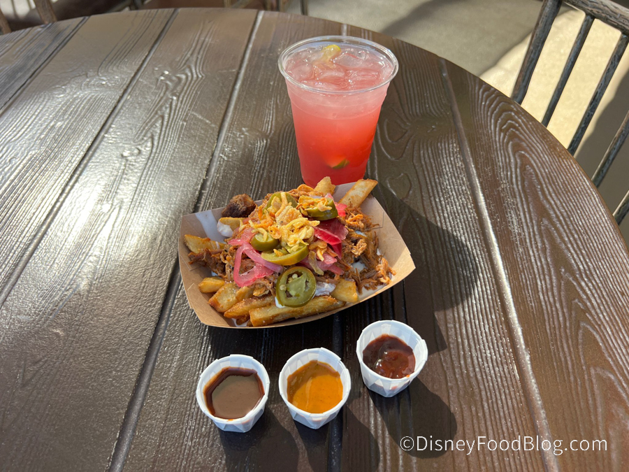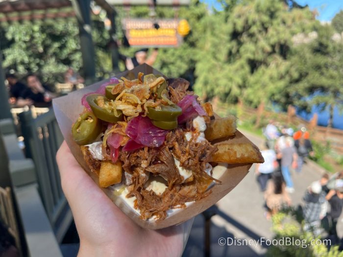 First, we tried the Loaded Fries for $14.99. These fries are made with smoked pulled pork, queso sauce, pickled red onions, pickled jalapeños, cilantro, and scallions.