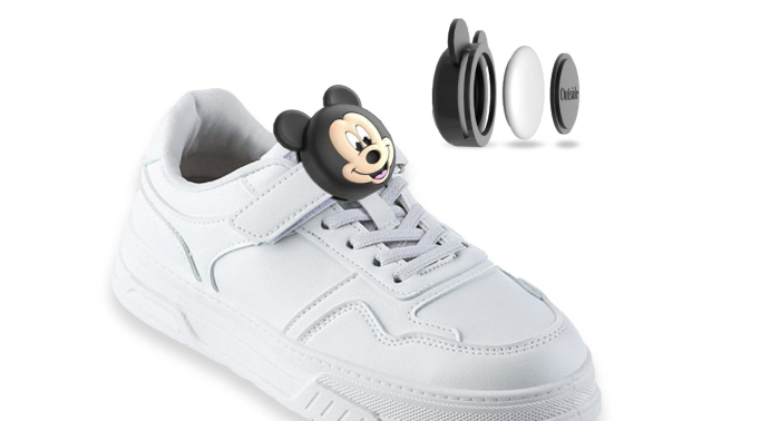 Another option is to place an AirTag on your child’s shoelaces. You can get a Minnie and Mickey shoelace AirTag case, which adds a fun Disney flair to your child’s shoes and safely keep the AirTag on them. Plus, the case is waterproof!