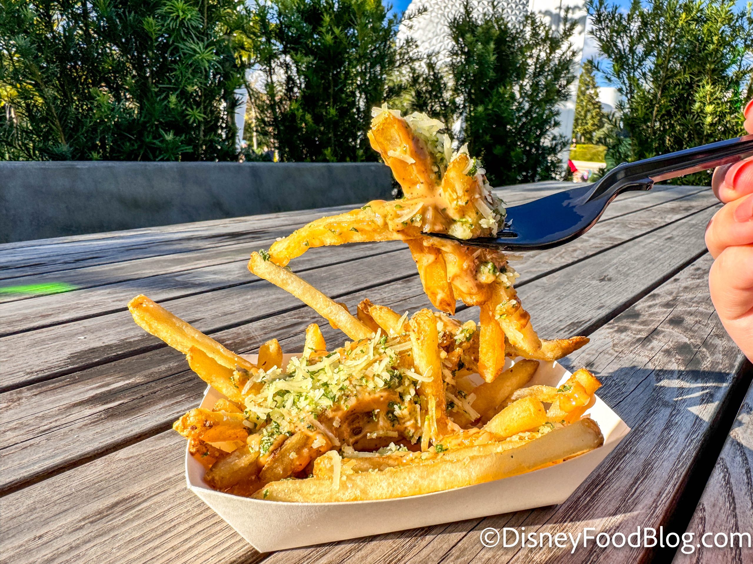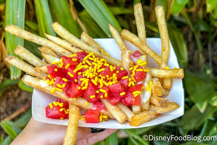 We’ve spent years asking this question, and we’ve tried thousands of treats during our 15 years of curating Disney Food Blog. Over the course of all that snacking, some offerings stand out more than others, and some are simply irresistible! So when we heard that Disney World was introducing several new types of loaded french fries, we knew we had to check them out.