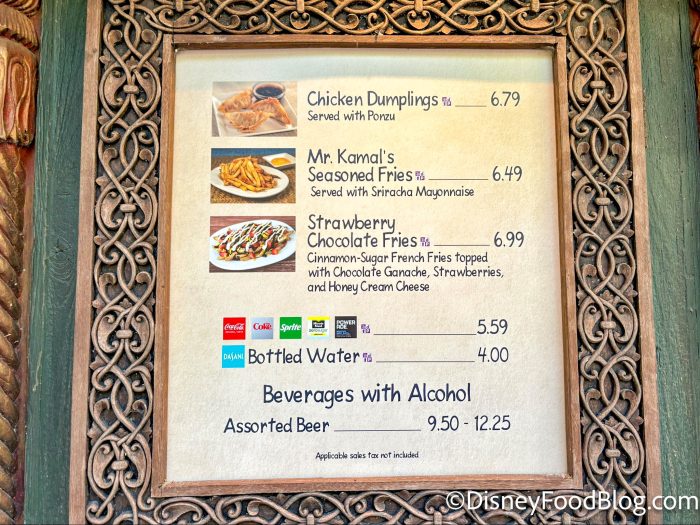 Around the corner at Flame Tree Barbecue, you can get the A-Maize-ing Magic Munch Fries for $6.49. These are french fries topped with sweet corn, chipotle mayonnaise, chili-lime-spiced cotija cheese, and popcorn. These are also available at Restaurantosaurus.