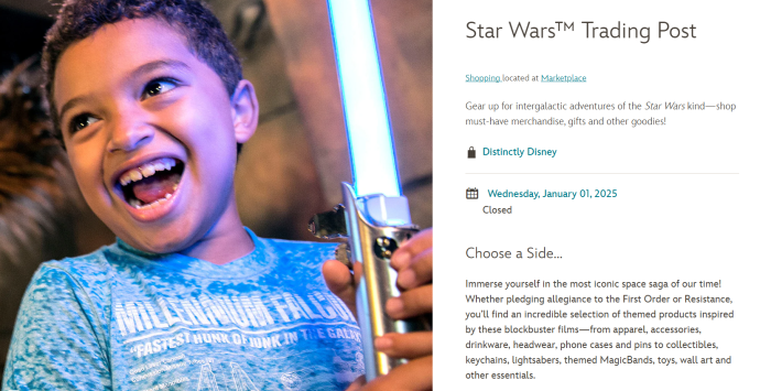 We checked Disney World’s website for Star Wars Trading post hours, and it’s listed as closed through January 1st, 2025 (as far out as the calendar goes). So it looks like this could be a permanent closure. Perhaps Disney has plans for something else in its space?